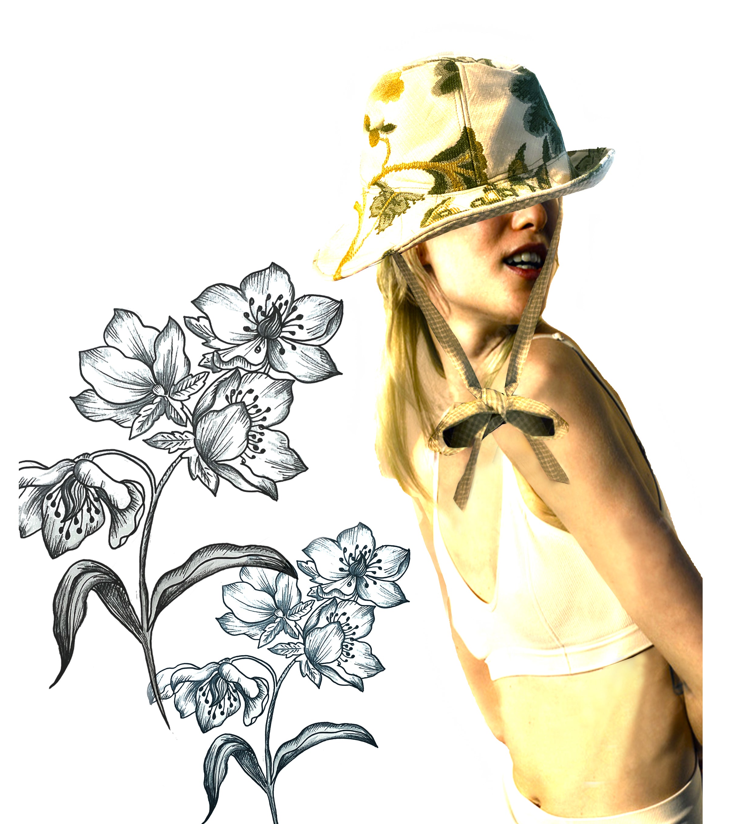 Handmade Floral Vintage Embroidery Fabric Hat with a charming neck tie strap